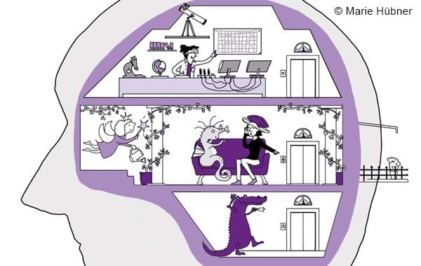 Leider geschieht das viel zu oft – auch wenn gar keine reale Gefahr droht. Unter den Stresshormonen leidet nicht nur unser Herz-Kreislauf-System, sondern auch unser Stoffwechsel und unserer Psyche. Viel besser ist es daher, wenn Madame Amy besonnen reagiert und nicht den Keller, sondern das Dachgeschoss aktiviert: Es entspricht unserem präfrontalen Kortex, vergleichbar mit einer klugen Ingenieurin. Sie kann Ziele entwickeln und uns helfen, sie zu erreichen. Nur so leben wir dauerhaft ausgeglichen und empfinden Freude.