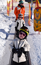 Der „echte Berg“ ist noch zu hoch und steil? Dann ab ins Brumsiland! Auf diesem Hang trauen sich selbst die Kleinsten das erste Mal auf einen Schlitten. Und auch Gloria und Florentina mit ihren fünf Jahren haben hier richtig Spaß.